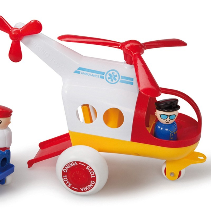 Fantástico helicóptero de rescate con dos personajes incluidos y una camilla. Fabricado en polipropileno flexible de alta resistencia con ruedas blanditas y rugosas para un mayor agarre.