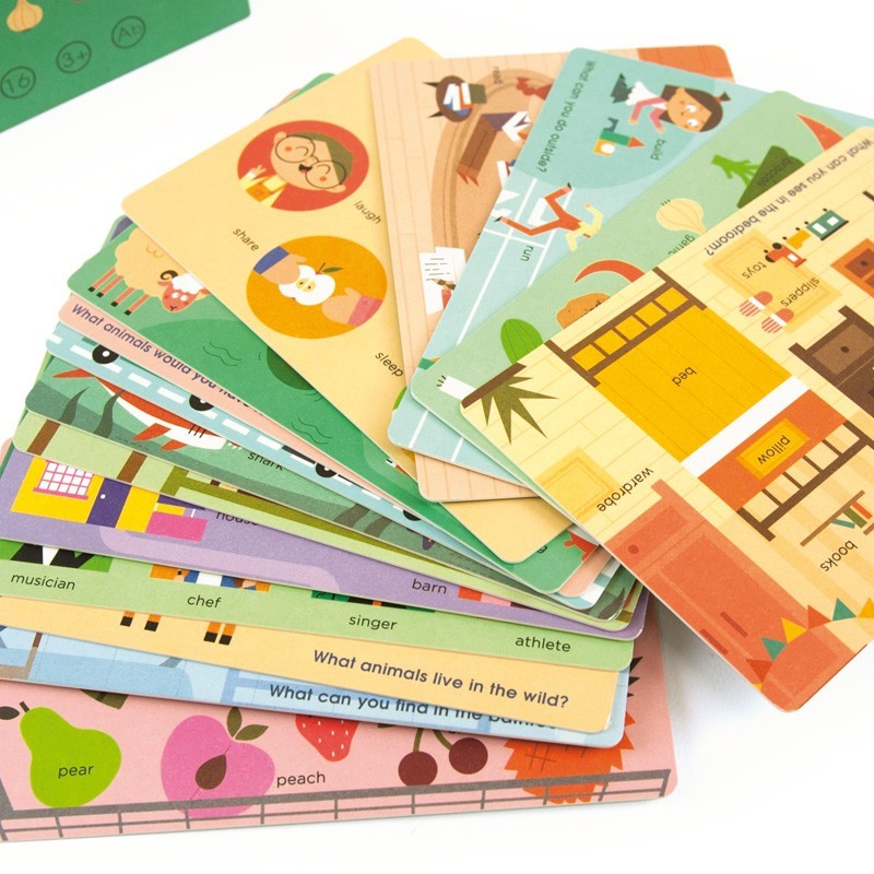 16 cartas cognitivas en inglés. Desarrolla la percepción> la memoria y el lenguaje> aprendiendo a relacionar las ilustraciones con su nombre.