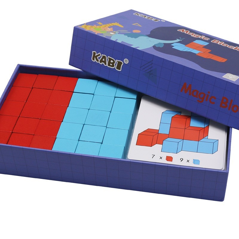 Juego de razonamiento lógico en 3D. 30 cubos de madera de 2x2cm y dos colores. Incluye 57 tarjetas con 114 combinaciones de construcción.