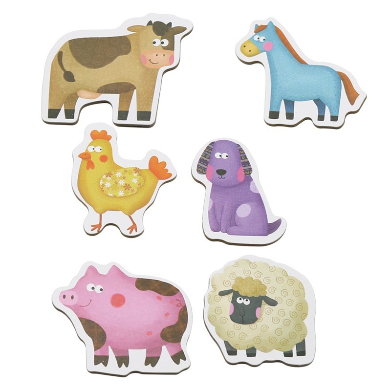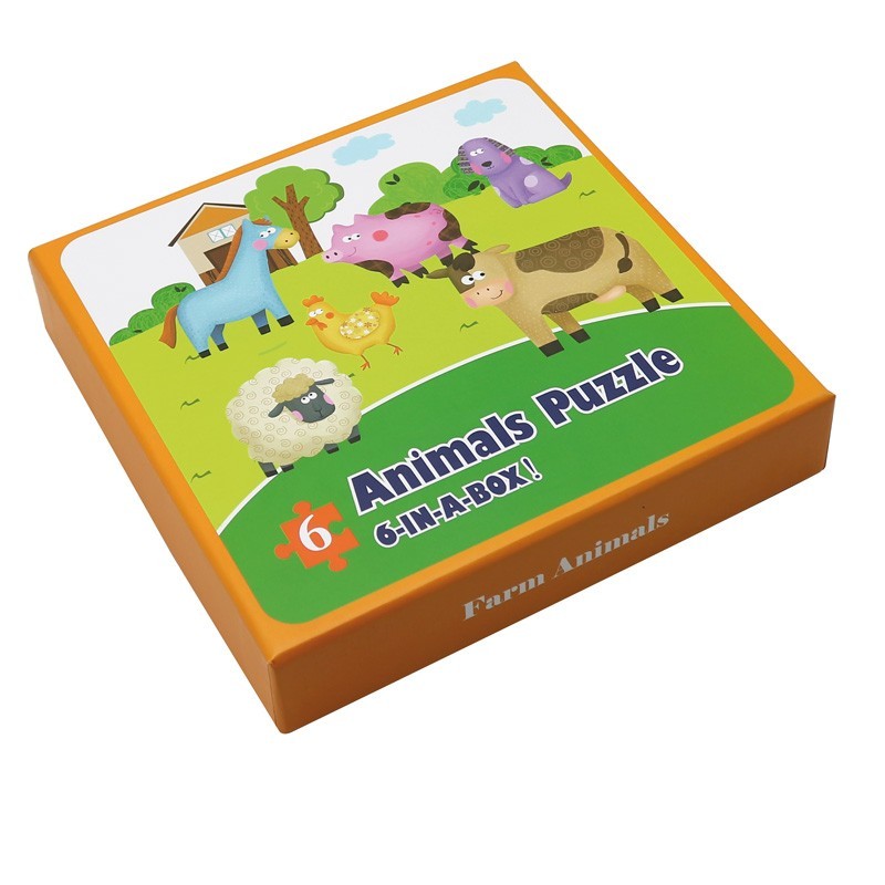 6 puzzles de 6 piezas cada uno> con dibujos de animales de granja. Fabricados en carton prensado.