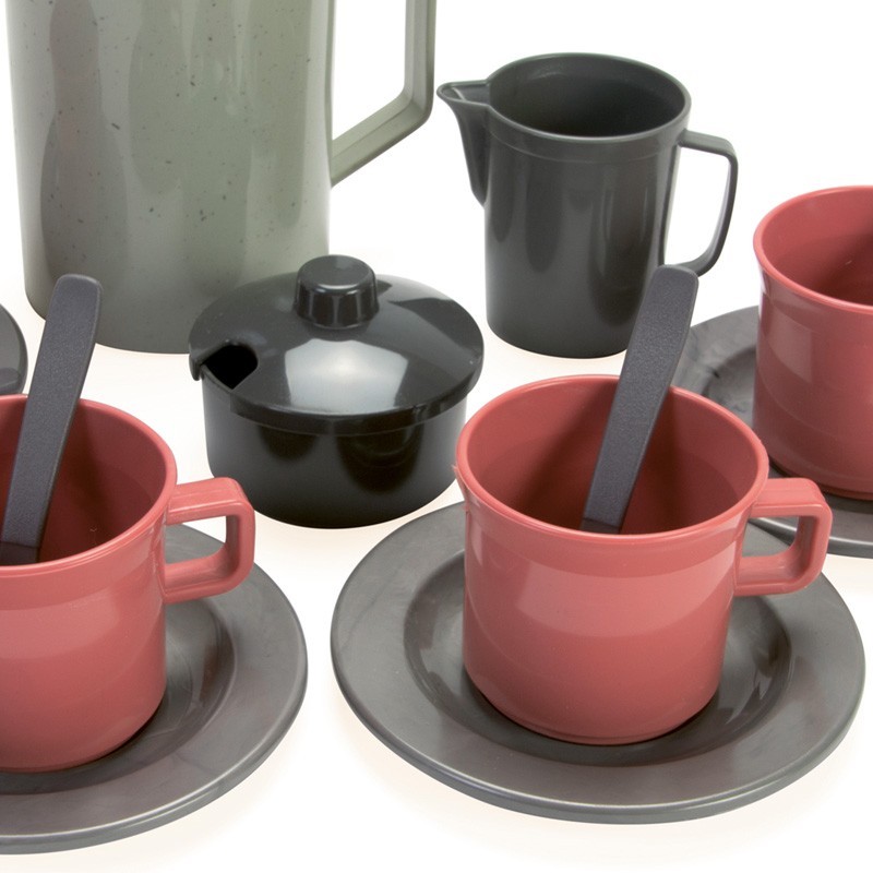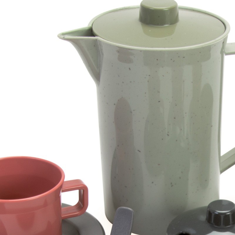 Conjunto de café para 4 personas> con 17 piezas. Fabricado 100% con plástico reciclado. Los colores pueden variar.