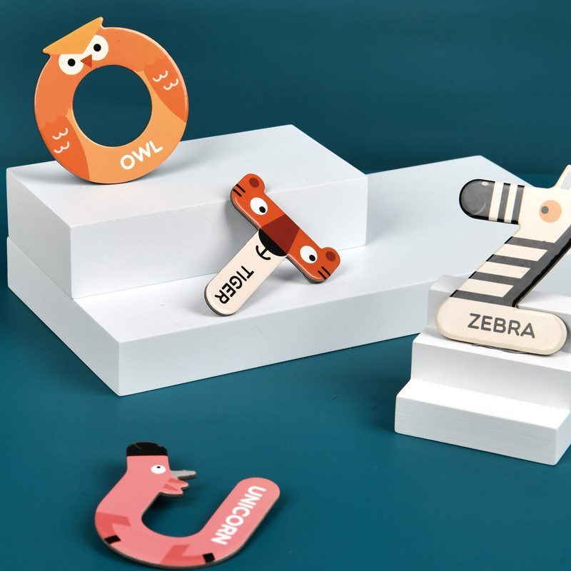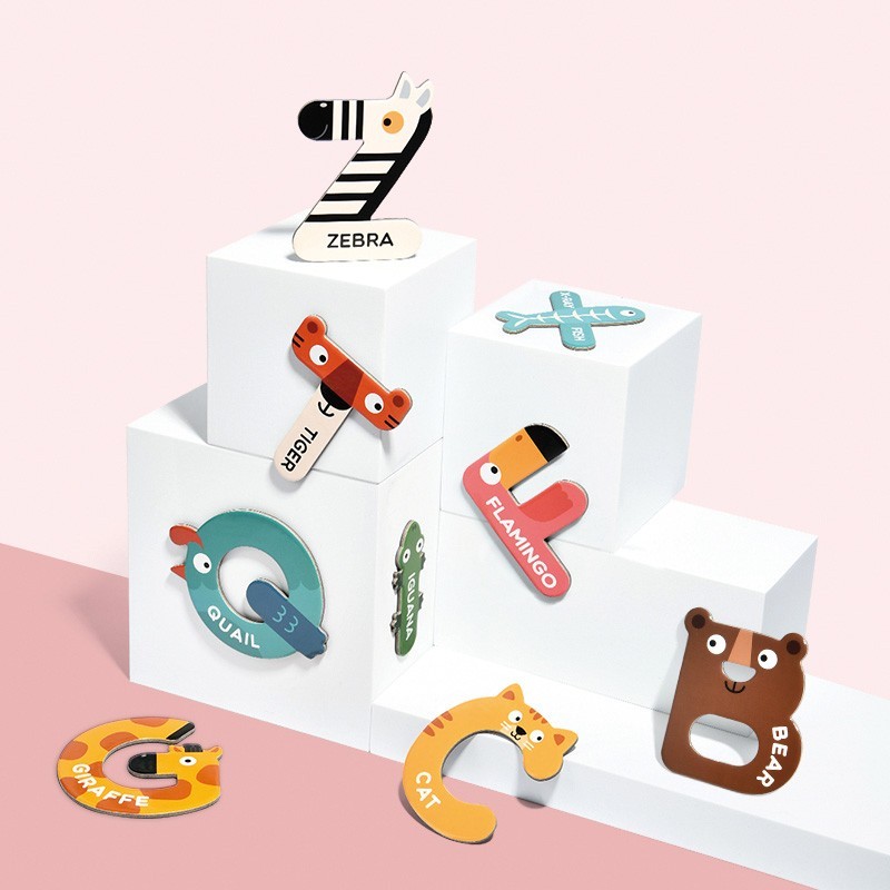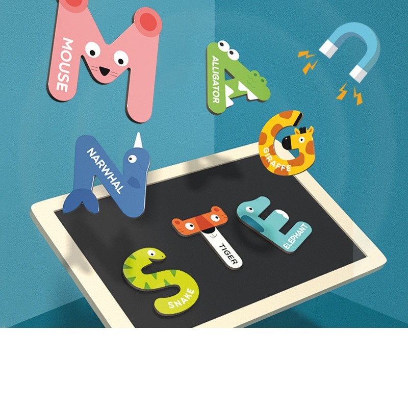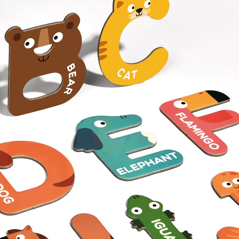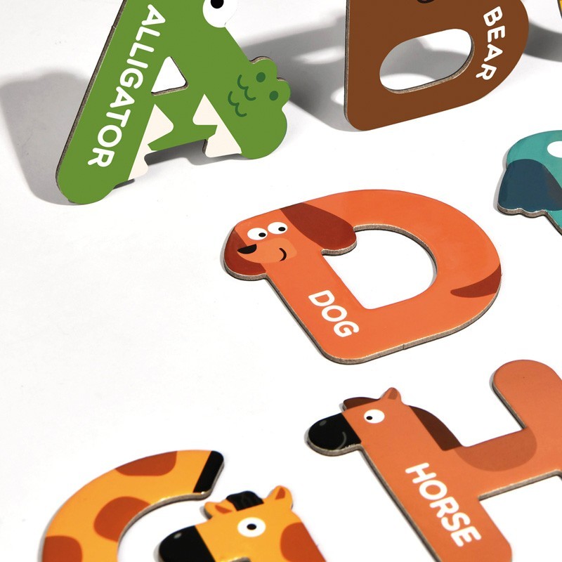 26 letras magnéticas de animales de cartón. 8 cm.
