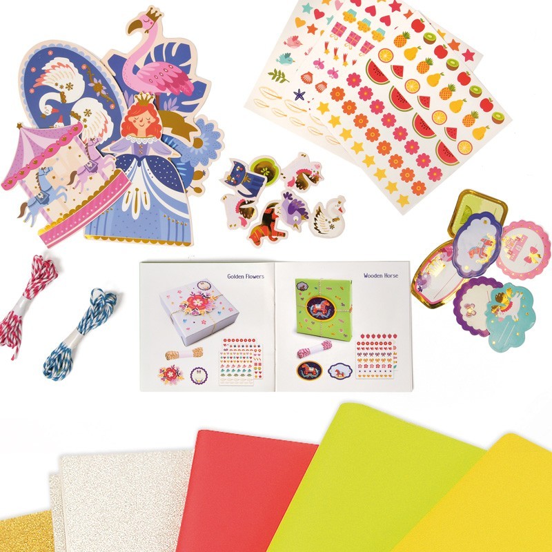 Crea> diseña y decora tus regalos con este kit de decoración. Mas de 70 piezas u objetos para empaquetar y decorar.