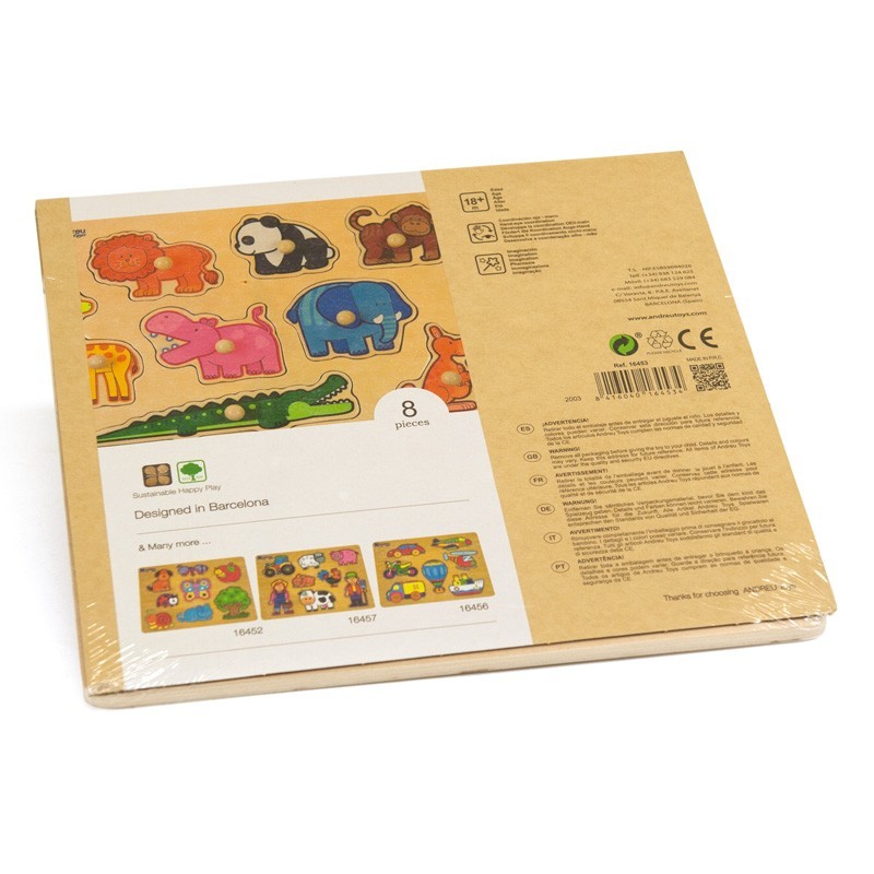 Encaje con 8 motivos relacionados con animales de la selva. Pivotes de madera. SERIE ENCAJES: Ref. 16450 – 16457.