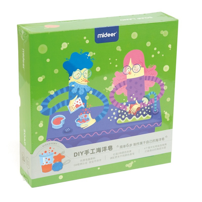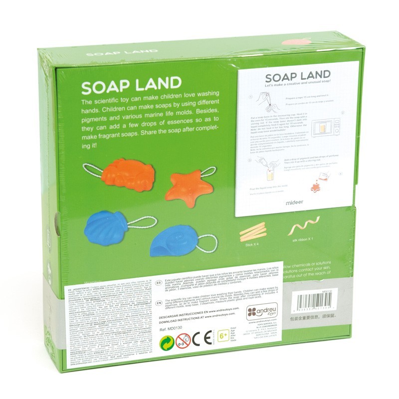 Este juguete científico puede hacer que a los niños les encante lavarse las manos. Los niños pueden hacer jabones usando diferentes pigmentos y varios moldes relacionados con la vida marina. Además> pueden agregar unas gotas de esencias> para hacer jabones aromáticos. ¡Comparte el jabón después de completarlo! Incluye 4 moldes diferentes> base de jabón> 3 esencias> vaso de plástico de medida y cordones.