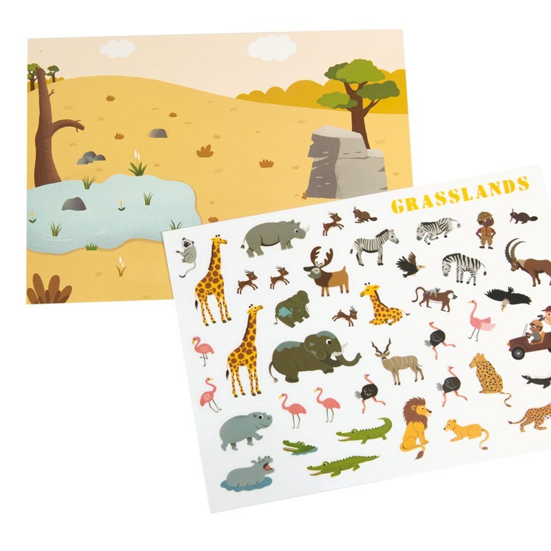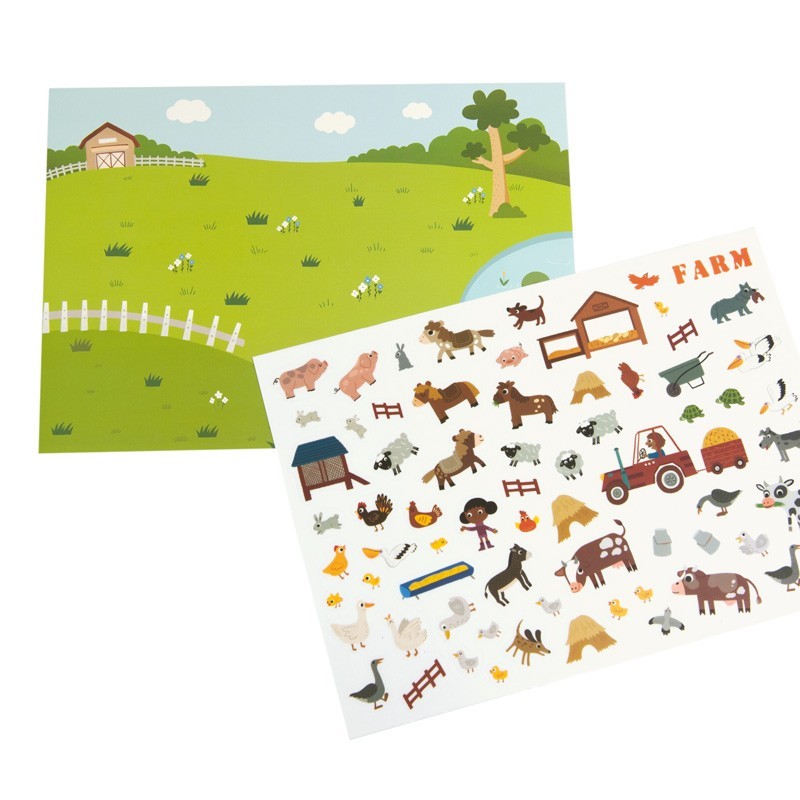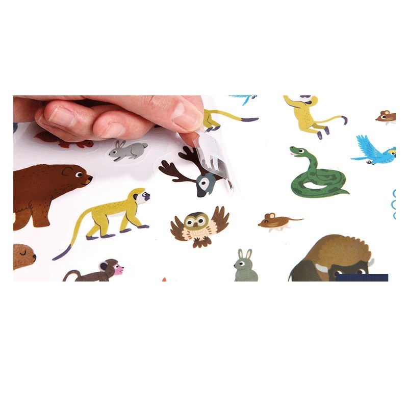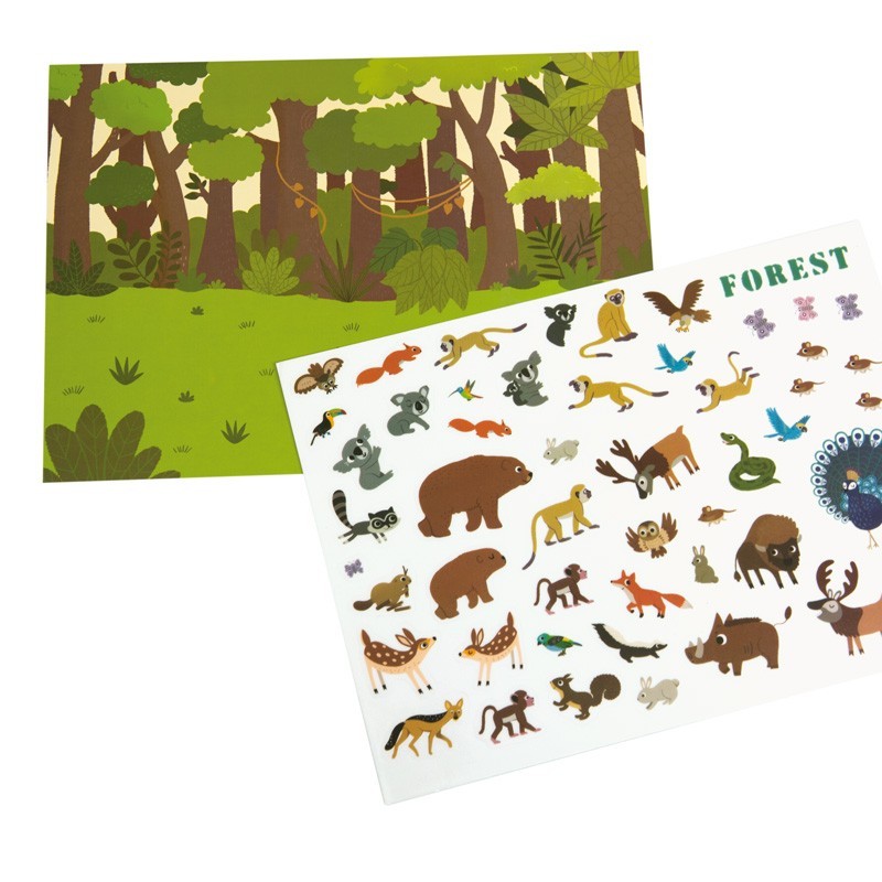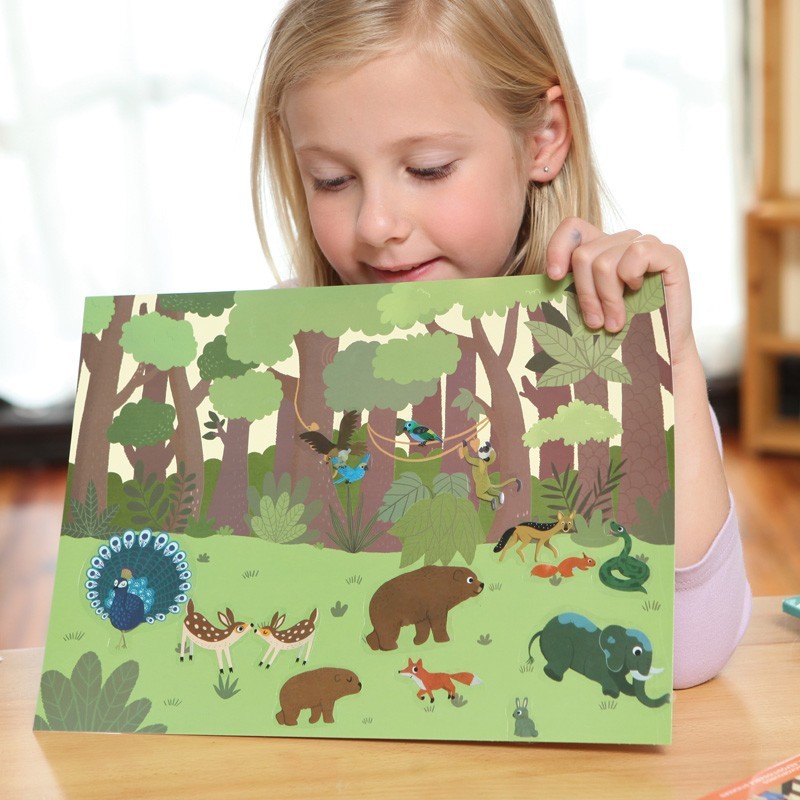 Más de 200 pegatinas reutilizables de animales y 4 escenas de fondos de colores para jugar. Escena de Bosque> Selva> Jurásico y Granja. Ideal para el desarrollo de las habilidades motrices finas> la coordinación mano-ojo> el pensamiento narrativo> las habilidades de comunicación y la expresión creativa.