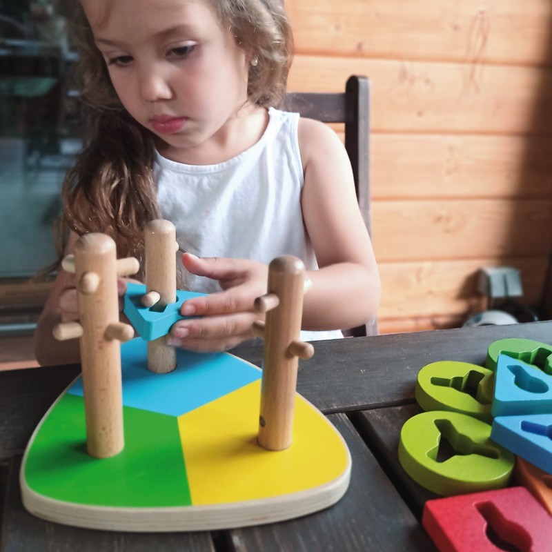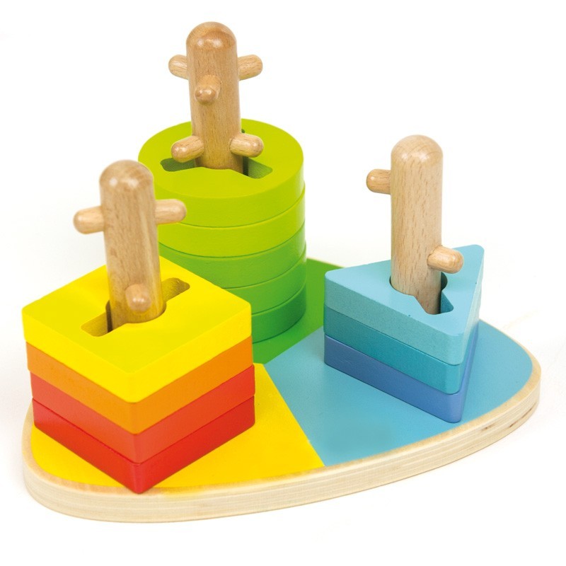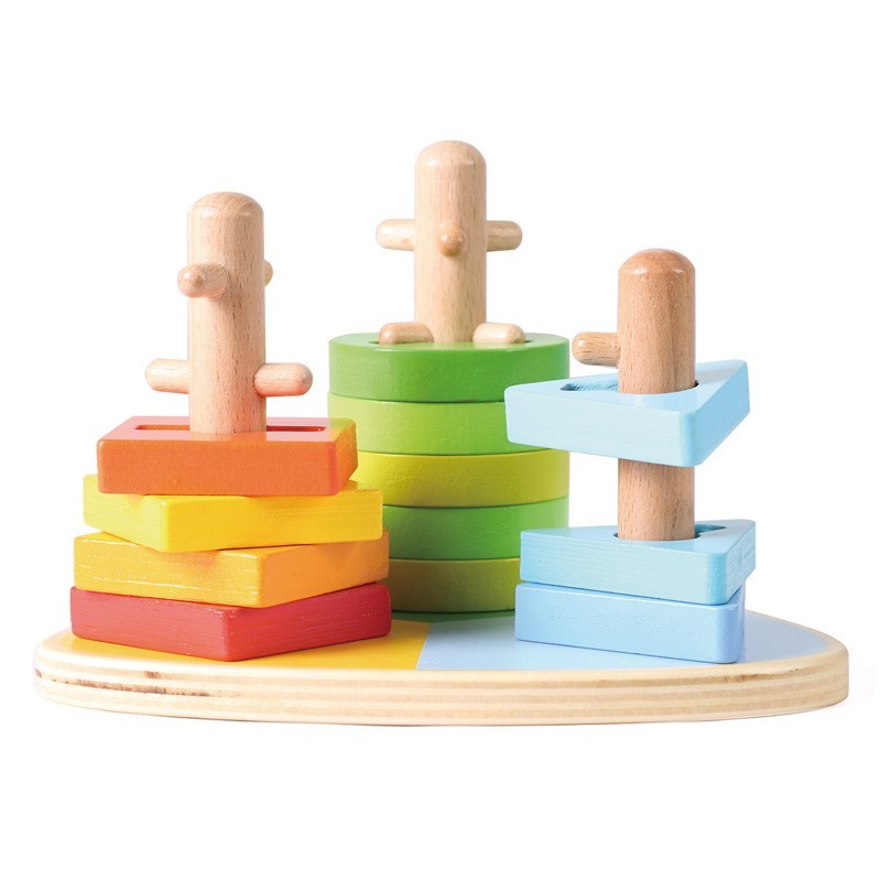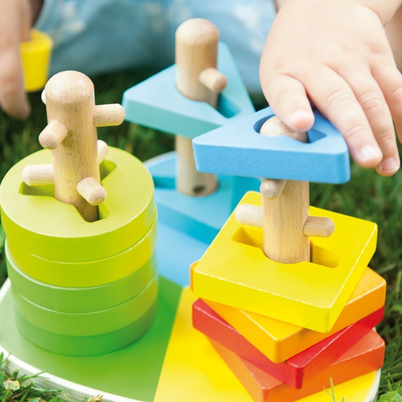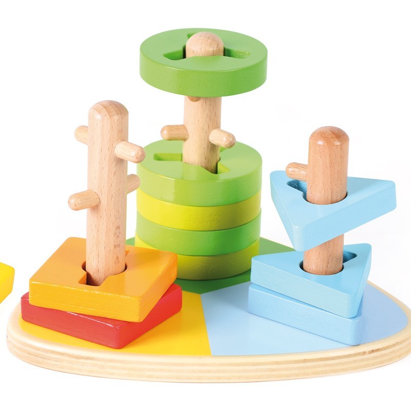 Juego de clasificación según la forma y el color de la base. Ideal para el desarrollo de las habilidades motoras finas> la destreza> la coordinación mano-ojo y la manipulación. Bueno para inducir a la lógica> la comprensión causa-efecto y la concordancia.
