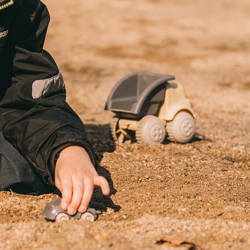 Este juguete está hecho con un 98% de caña de azúcar y un 2% de astillas de madera del arbol del caucho. Producto eco-friendly> sostenible y reciclable.