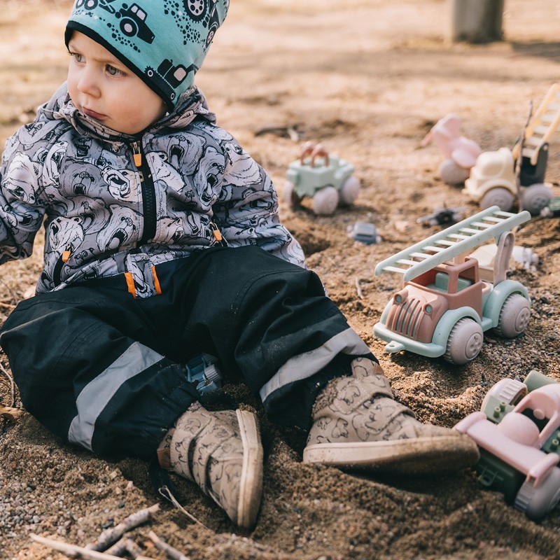 Este juguete está hecho con un 98% de caña de azúcar y un 2% de astillas de madera del arbol del caucho. Producto eco-friendly> sostenible y reciclable.
