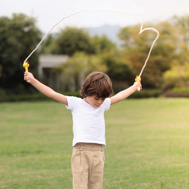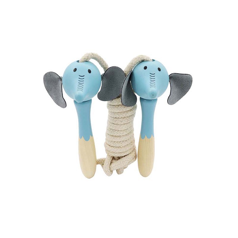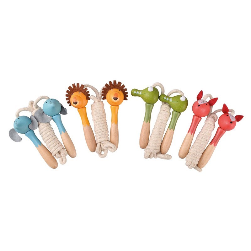 Display con 8 cuerdas de saltar de 2m de largo y 4 diseños de animales de madera.