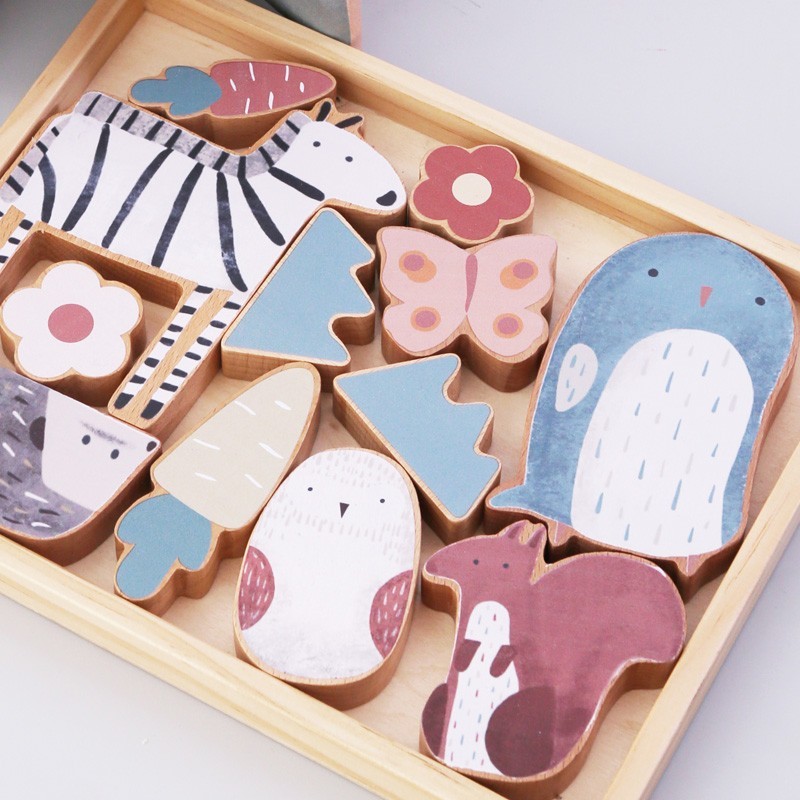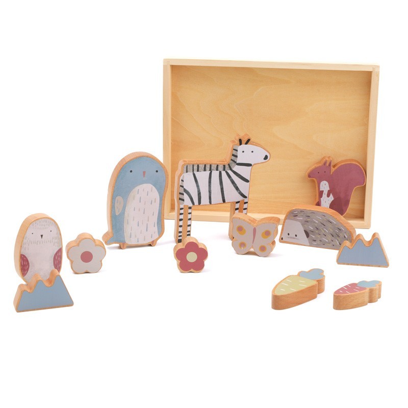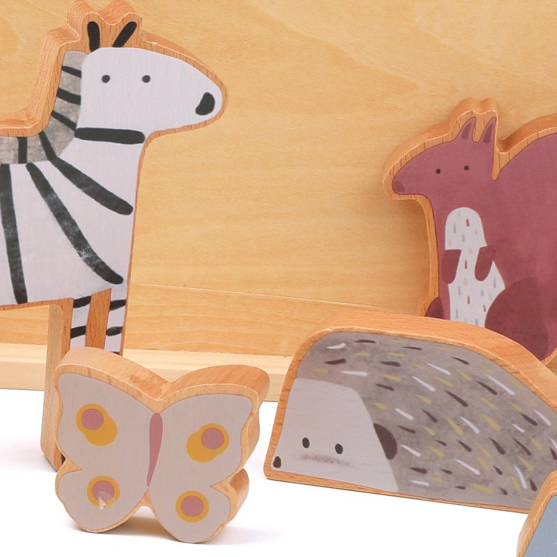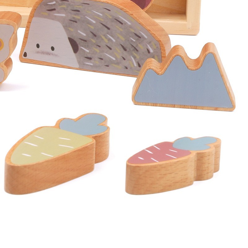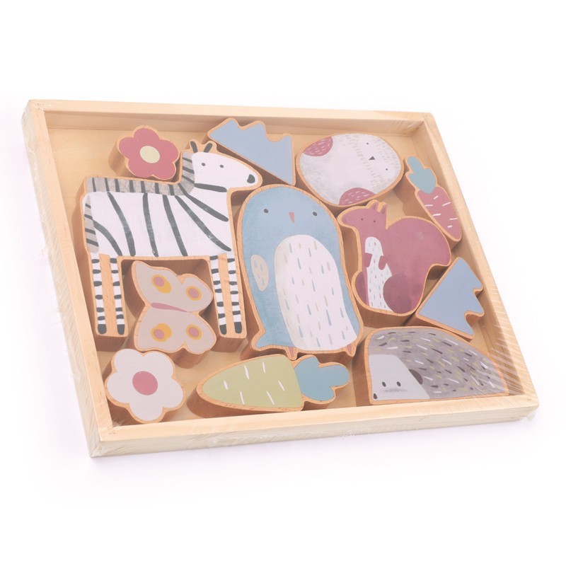 Mezcla todas las piezas e intenta colocarlas dentro de la caja de madera. Caben todas! Medidas de la caja 25 x 19>5 cm. Piezas de 3>5 a 12>5 cm. Grosor 1>5 cm.