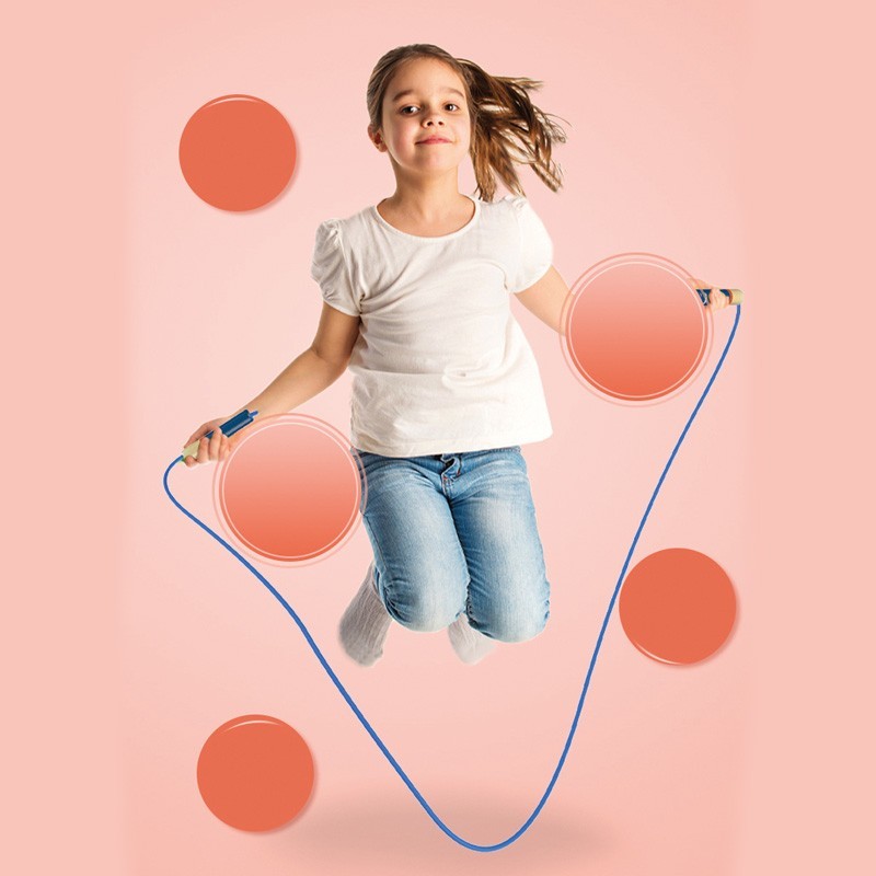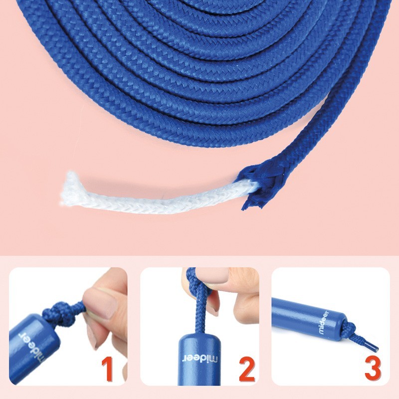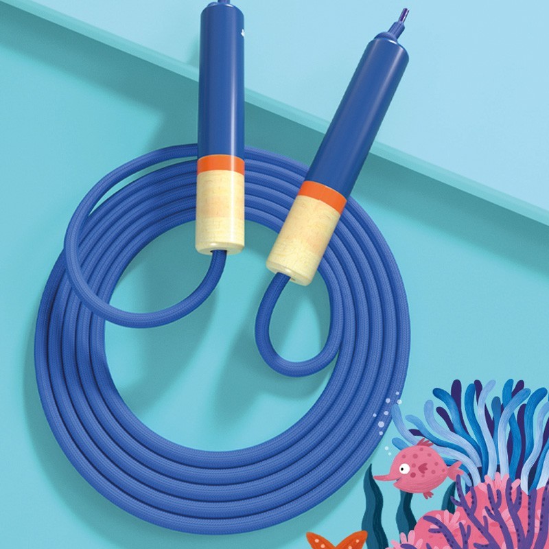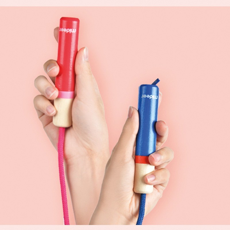 Juego de saltar la cuerda> para desarrollar el sentido del equilibrio y estimular la función corporal. Cuerda de 2>5 m y mangos de madera de haya.